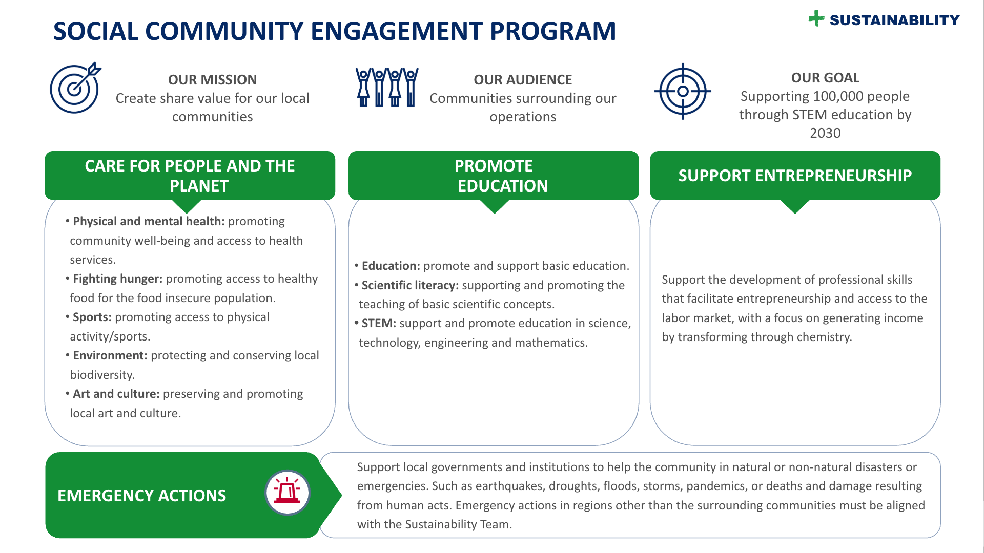 निजी निवेश, प्रोत्साहन, स्थानीय संगठनों और स्वयंसेवी परियोजनाओं के साथ साझेदारी के माध्यम से, हम समुदायों को मजबूत करना चाहते हैं और अधिक टिकाऊ और समावेशी भविष्य में योगदान करते हैं।हम आपको अपने कार्यों के बारे में अधिक जानकारी प्राप्त करने और जीवन को बदलने और एक बेहतर दुनिया के निर्माण के इस उद्देश्य में हमारे साथ जुड़ने के लिए आमंत्रित करते हैं।